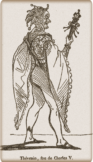 On connaît seulement les noms de Thevenin, sous Charles V ; de Caillette et de Triboulet, sous Louis XII et François Ier ; de Polite et de Brusquet, sous Henri II, François II et Charles IX ; de Sibilot, sous Henri III ; de Maître-Guillaume et Chicot, sous Henri IV ; d'Angoulevent et de L'Angely, sous Louis XIII et Louis XIV. Voilà bien des interrègnes dans le royaume de la folie qui commence, d'une manière certaine, à Charles-le-Sage.